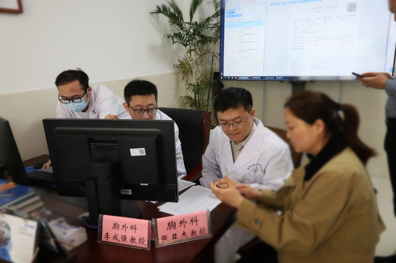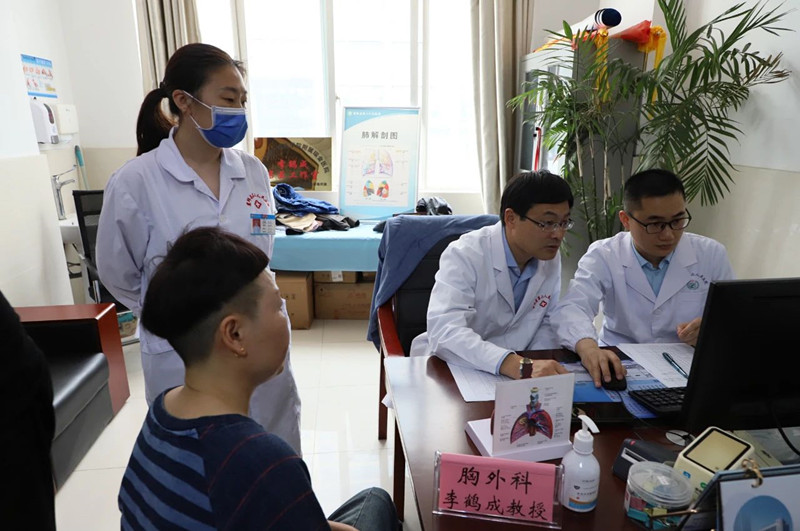 揭牌仪式后,由上海瑞金医院胸外科、呼吸科、肿瘤科等组成的8人专家团在霍邱县二院开展系列学术惠民活动,通过“义诊+示教+学术讲座”立体化帮扶模式,推动优质医疗资源落地生根。