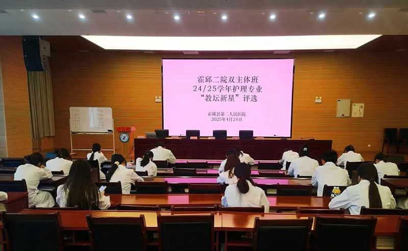 霍邱二院网 为庆祝第114个"5·12"国际护士节,弘扬南丁格尔精神,提升护理教学水平,4月24日,县二院在人才培训中心七楼成功举行护理专业"教坛新星"评选活动。护理2304班、2307班共20名优秀学生代表,通过公平公正的评选机制,护理专业马成群、丁志菊两位教师获评县二院"教坛新星"荣誉称号。