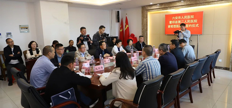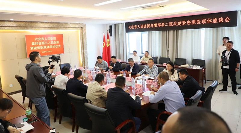 霍邱二院网 为深化紧密型医联体建设,推动优质医疗资源下沉,共绘健康“同心圆”,4月26日,六安市人民医院党委副书记、院长王启伟率专家团队赴霍邱二院开展紧密型医联体合作签约揭牌仪式暨义诊、教学查房、学术交流等系列活动。霍邱县副县长吕彬,霍邱县委卫健工委书记、县卫健委主任杨忠敏,霍邱二院党委书记周进等班子成员及相关科室负责人参加座谈会并见证签约、揭牌。