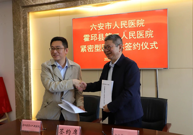 六安市人民医院党委委员、副院长方国军霍邱二院党委书记周进现场签约