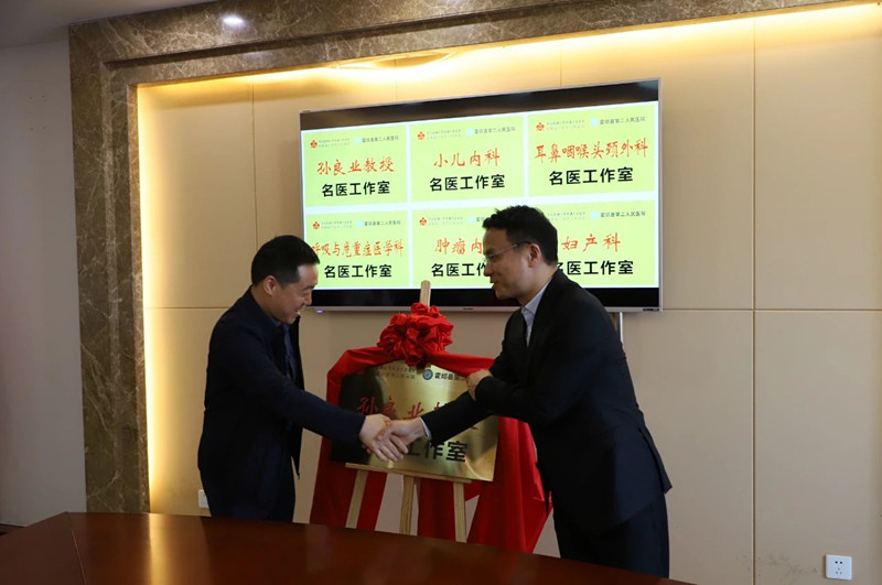 签约揭牌仪式由霍邱县委卫健工委书记、县卫健委主任杨忠敏主持。霍邱二院党委书记周进首先致欢迎辞;市人民医院党委副书记、院长王启伟教授围绕下一步通过专家坐诊、学科共建、人才培养等方式全面提升霍邱县域诊疗能力做了表示。最后,副县长吕彬作总结讲话,对市人民医院提出请求、对霍邱二院做出要求,并希望在市人民医院带动下,霍邱二院医疗服务能力再获提升,为县域医疗卫生事业做出更大贡献。双方签署紧密型医联体合作协议并举行“孙良业教授名医工作室”及“小儿内科等学科共计六个名医工作室”揭牌仪式。随后,市人民医院耳鼻喉头颈外科、肿瘤内科、妇科、儿科等十余个学科专家到达一线诊室为慕名前来就诊的群众开展义诊服务,并深入病房开展教学查房指导。