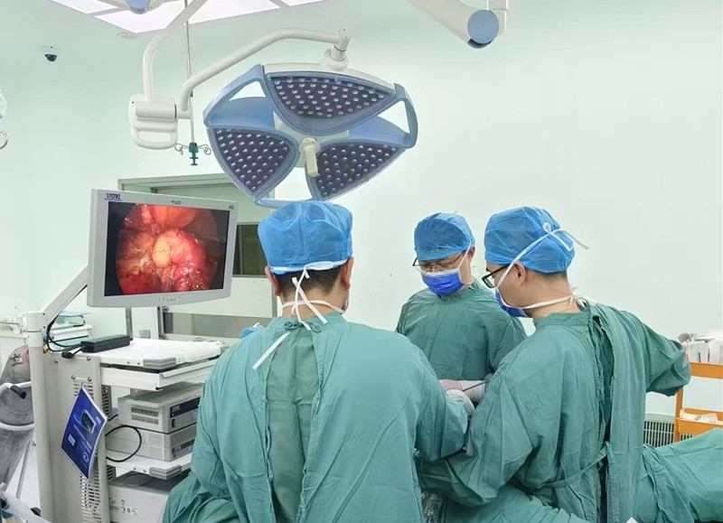 在县二院门诊部二楼“李鹤成名医工作室”现场,张亚杰博士为第五期预约而来的40余名患者耐心细致地进行诊疗分析、提供建议和提醒注意事项,并耐心解答患者提出的疑问,深受患者好评。坐诊结束后,张亚杰博士带领县二院胸外科团队先后为预约的2位手术患者(肺结节手术1例、纵隔肿瘤手术1例)开展手术。