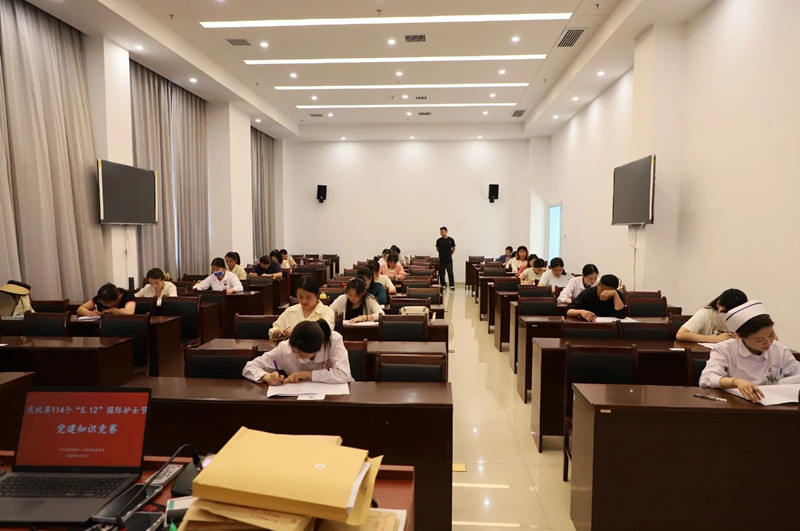 霍邱二院网 为庆祝第114个国际护士节,传承南丁格尔精神,4月27日,县二院在人才培训中心楼举行党建知识竞赛,来自院本部及11家医共体分院的各党支部推荐的护士党员代表同台竞技。