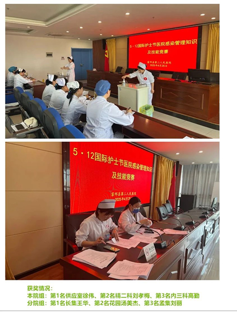 霍邱二院网 “5·12”国际护士节即将来临之际,为进一步深化医院感染管理内涵建设,4月29日,县二院在住院部十六楼会议室成功举行以“筑牢感控防线,共同护卫健康”为主题的医院感染管理知识、技能竞赛活动。来自院本部及11家医共体分院的35名护理人员同台竞技,以专业素养展现新时代感控人的责任担当。