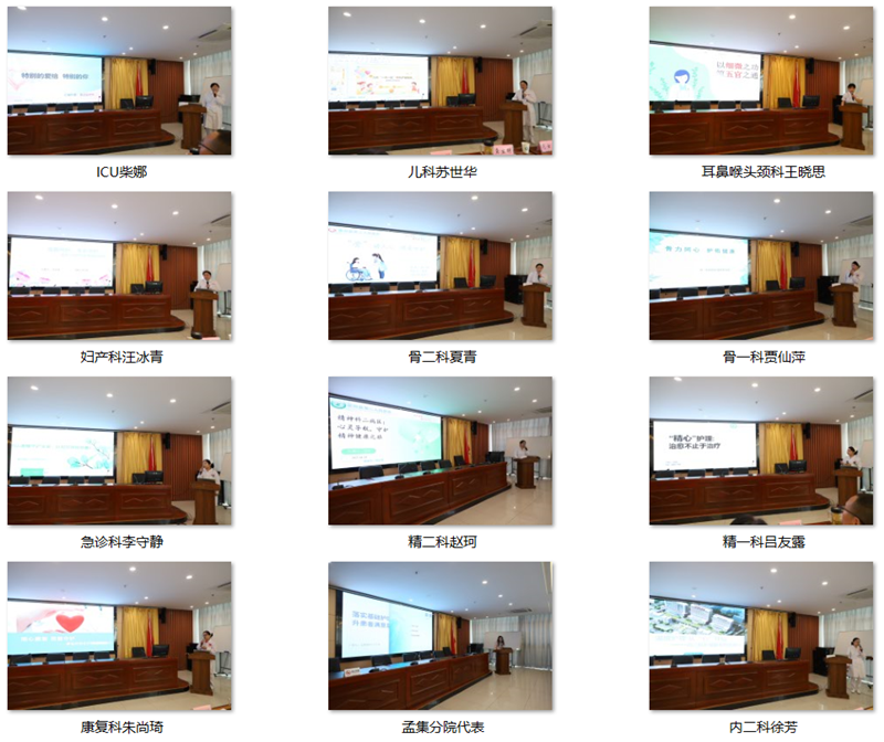 主题竞赛活动紧扣“优质护理服务、专科特色、康复指导、护理创新”四大核心,参赛团队以PPT或视频为载体,将临床实践中的暖心举措转化为鲜活案例。评审专家现场按照《评分标准》从创新性、实用性等六大维度严格评分,现场采用“去极值取均分”机制,确保公平公正。经过激烈角逐,外一科裴贻迪《温度护理,点亮生命微光》摘得桂冠、急诊科李守静《以温暖守护生命,以规范铸就质量》荣获二等奖、外二科刘红娟《始于细微,终于优质》荣获三等奖;孟集分院、宋店分院代表获得优胜奖。