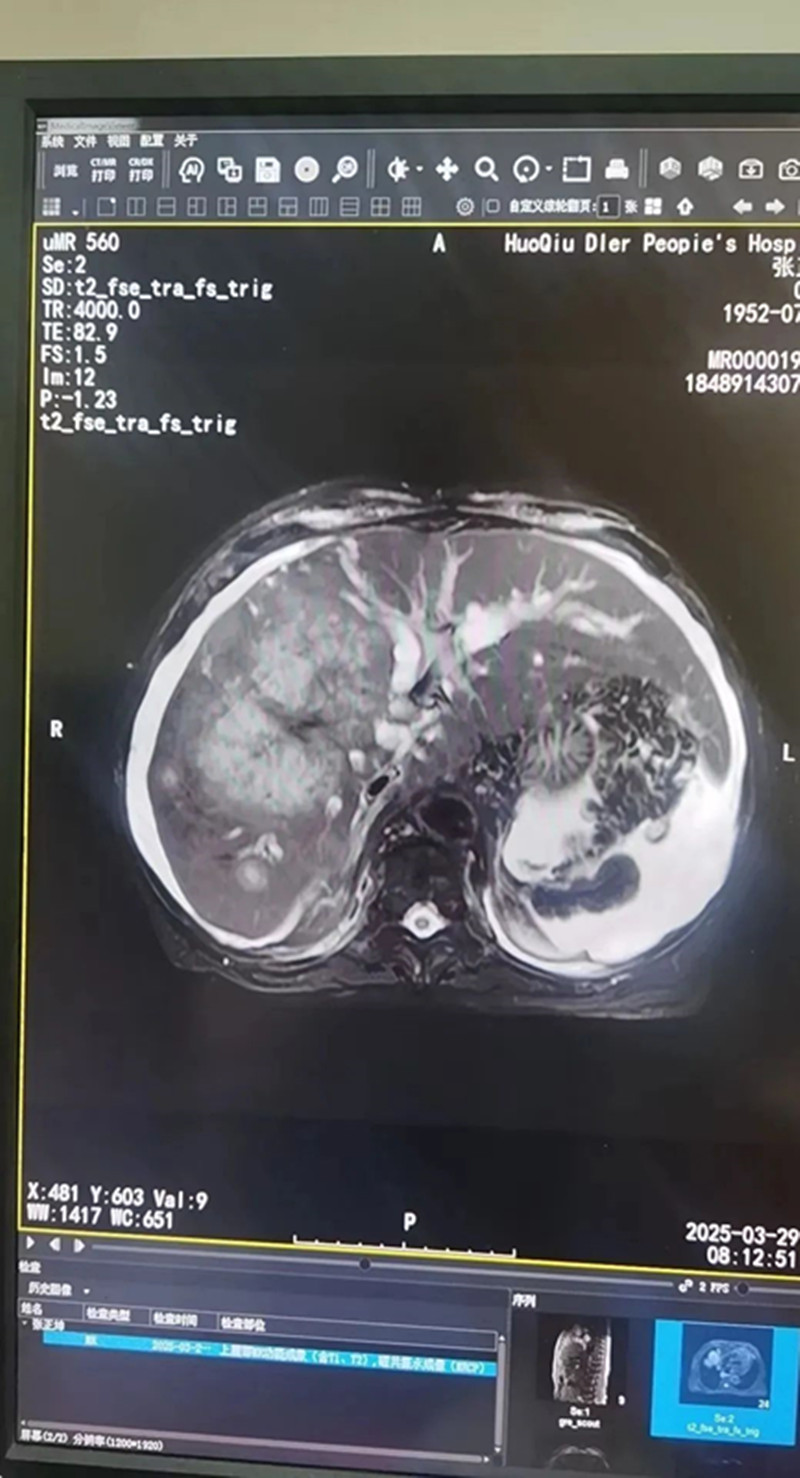 据了解,患者张某,男,72岁,确诊晚期胆管癌2月余,近1周患者出现腹痛、腹胀不适,伴有全身黄染,症状呈持续性无缓解,为求进一步诊疗收住县二院肿瘤内科。该科副主任医师陶黎明带领团队,经科内充分讨论评估和患者充分沟通后,遂对患者成功实施了PTCD术。术后患者症状得到明显改善。这场“穿刺攻坚战”的核心——经皮肝穿胆道引流术(PTCD)正是通过皮肤穿刺将引流管置入肝内胆管,将淤积的胆汁引出体外,缓解了黄疸危机,迈过了最险峻的一关。