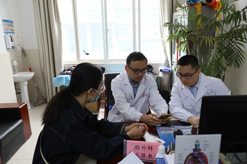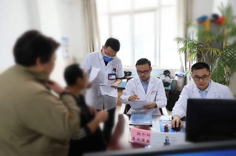 在县二院门诊部二楼“李鹤成名医工作室”现场,李成强博士为第六期预约而来的30余位患者耐心细致地进行诊疗分析、提供建议和提醒注意事项,并耐心解答患者提出的疑问,深受患者好评。坐诊结束后,李成强博士带领县二院胸外科团队先后为预约的手术患者(肺结节手术2例)开展手术及针对性教学查房(食管癌术后病人,食管癌围手术期管理)。
