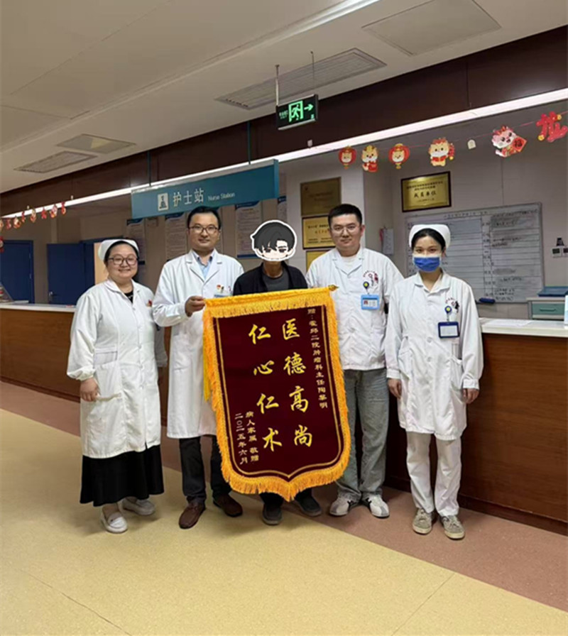 霍邱二院网 近日,一面绣有“医德高尚 仁心仁术”字样的锦旗,再次被郑重地送至县二院肿瘤科护士站。患者家属通过这份满载深情的礼物,向陶黎明主任及其护理团队表达了最诚挚的感激之情。这不仅是对肿瘤科近期工作的又一次认可,更是对科室医护团队专业素养的肯定与信任,成为激励科室前行的动力,同时也延续了医患之间温馨感人的故事。
