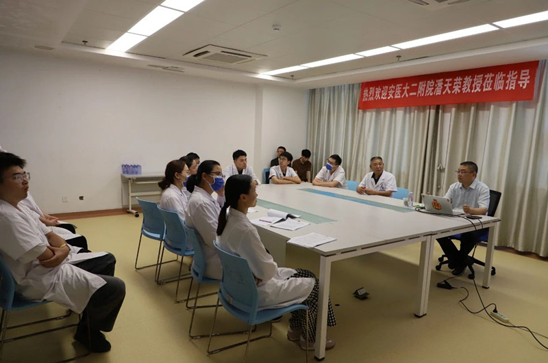 霍邱二院网 7月9日,在县二院内二科病区(糖尿病科/内分泌科)邀请下,安徽医科大学第二附属医院内分泌科行政主任、主任医师、教授、博士生导师、博士后合作导师潘天荣教授来到县二院内二科病区开展学术讲座及教学查房活动。内二科病区主任司应明及其团队(包括实习医护人员)共同参与了此次学术交流及查房活动,共享这场知识与经验交融的学术大餐。
