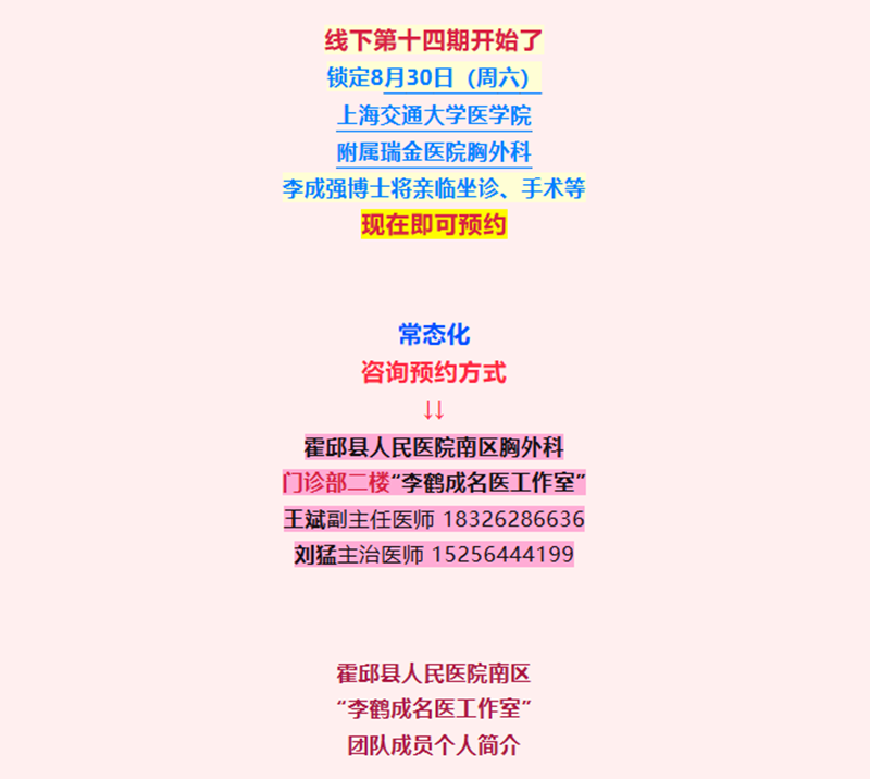 霍邱人民医院南区网 8月17日,上海交通大学医学院附属瑞金医院胸外科副主任医师、破格副研究员张亚杰博士如约莅临霍邱县人民医院南区,开展常态化坐诊、教学查房及高难度手术示范系列活动。作为瑞金医院与霍邱县人民医院深化医联体合作的重要举措,“李鹤成名医工作室”团队专家大咖定期亲临县域开展诊疗服务,已形成“专家固定下沉、技术持续赋能”的长效机制,让基层患者在“家门口”即可享受国家级三甲医院的同质化医疗服务,为推动区域胸外科诊疗能力提升注入了强劲动力。