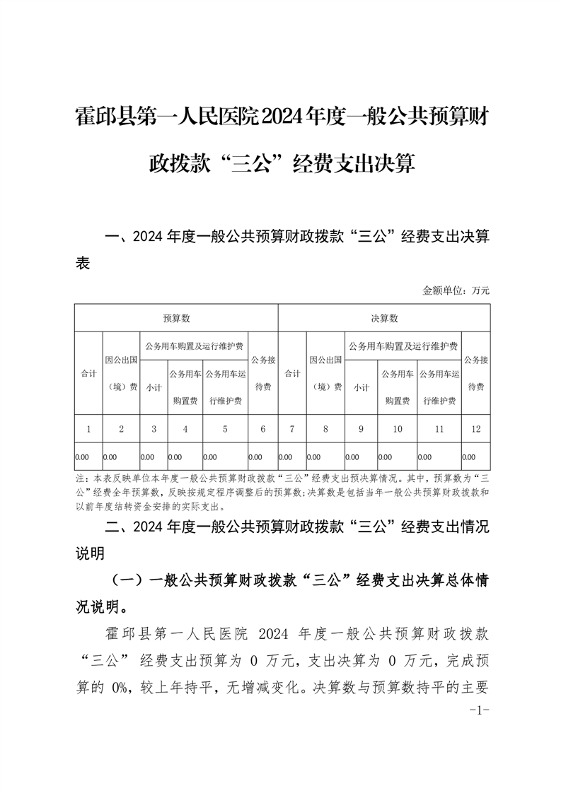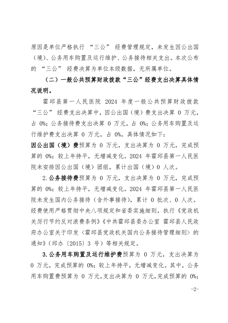 霍邱县第一人民医院2024年度一般公共预算财政拨款“三公”经费支出决算